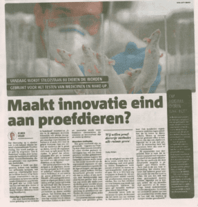 Mooi voorbeeld daarvan is het grote artikel in Metro onder de kop: Maakt innovatie een eind aan proefdieren? In dit artikel komt onze directeur Debby Weijers uitgebreid aan het woord. En ons antwoord ‘Ja, dat kan zeker’, wordt steeds vaker gehoord.