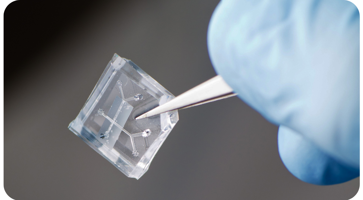 Menselijke cellen kunnen op dit plaatje leven en door de sensoren in de chip kan het gedrag bestudeerd worden met een microscoop. De chip is letterlijk en figuurlijk levensveranderend; het laat namelijk nu al succesvollere resultaten zien dan dierproeven. En dat is een vooruitgang voor dier én mens.