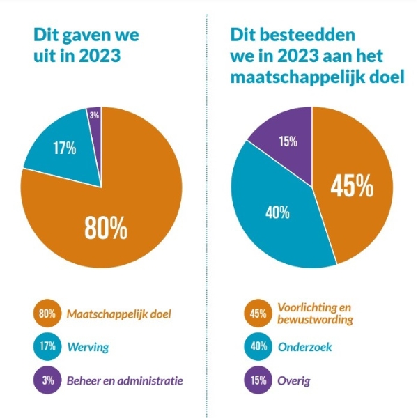 Natuurlijk zorgen we er altijd voor dat de investering in fondsenwerving zich dubbel en dwars terugbetaalt in geld dat we in onderzoek en voorlichting kunnen stoppen. Dat spreekt voor zich: dit is namelijk de enige reden dat we überhaupt aan fondsenwerving doen.